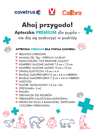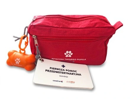 Do apteczki dołączone jest etui z rolką woreczków na odchody, a także instrukcja udzielania pierwszej pomocy.