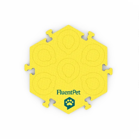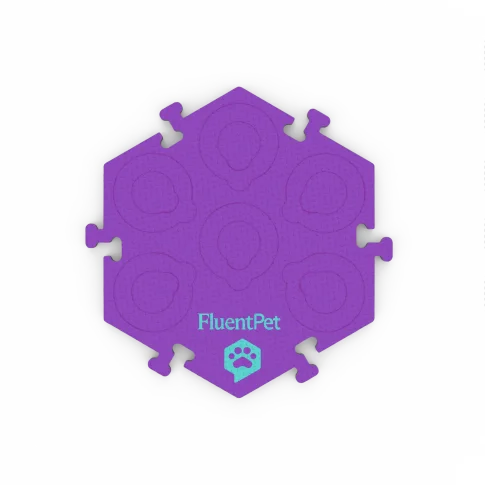 Maty FlexTiles umożliwiają organizację zarówno dużych przycisków innych marek, jak i kompaktowych przycisków dźwiękowych FluentPet na jednej powierzchni. Maty na przyciski FlexTiles oferują elastyczność w rozmieszczeniu przycisków, co jest szczególnie przydatne dla opiekunów zwierząt korzystających z różnych typów przycisków komunikacyjnych.