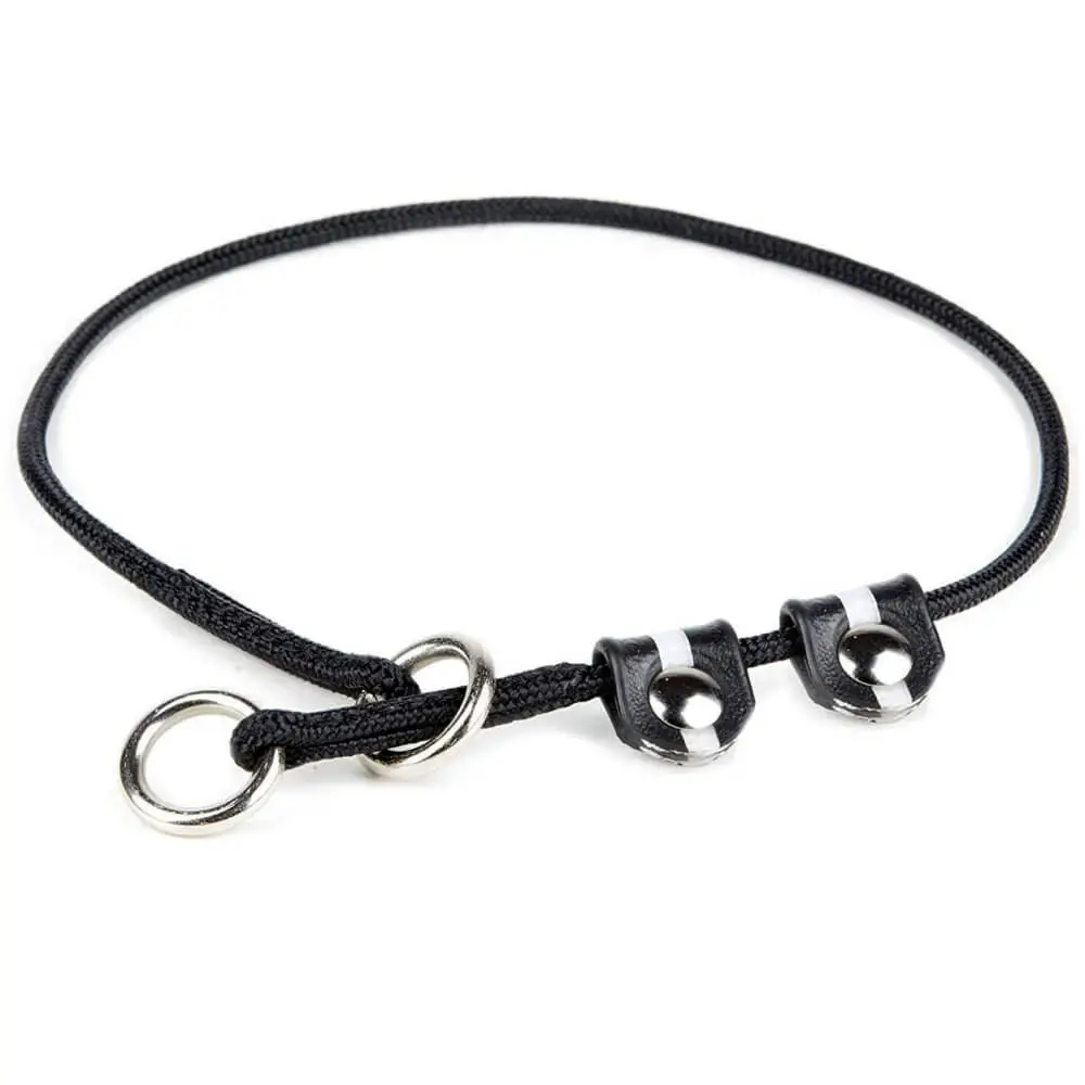 Stosowana przez profesjonalnych trenerów na całym świecie. Budowa obroży zapobiega ciągnięciu smyczy przez psa. Delikatnie zaciska się na szyi zwierzęcia w momencie gdy ten ciągnie, dając mu tym samym sygnał do zaniechania tego zachowania. Wyposażona została w stoper, pozwalający opiekunowi oznaczyć maksymalny stopień zacisku obroży na szyi.