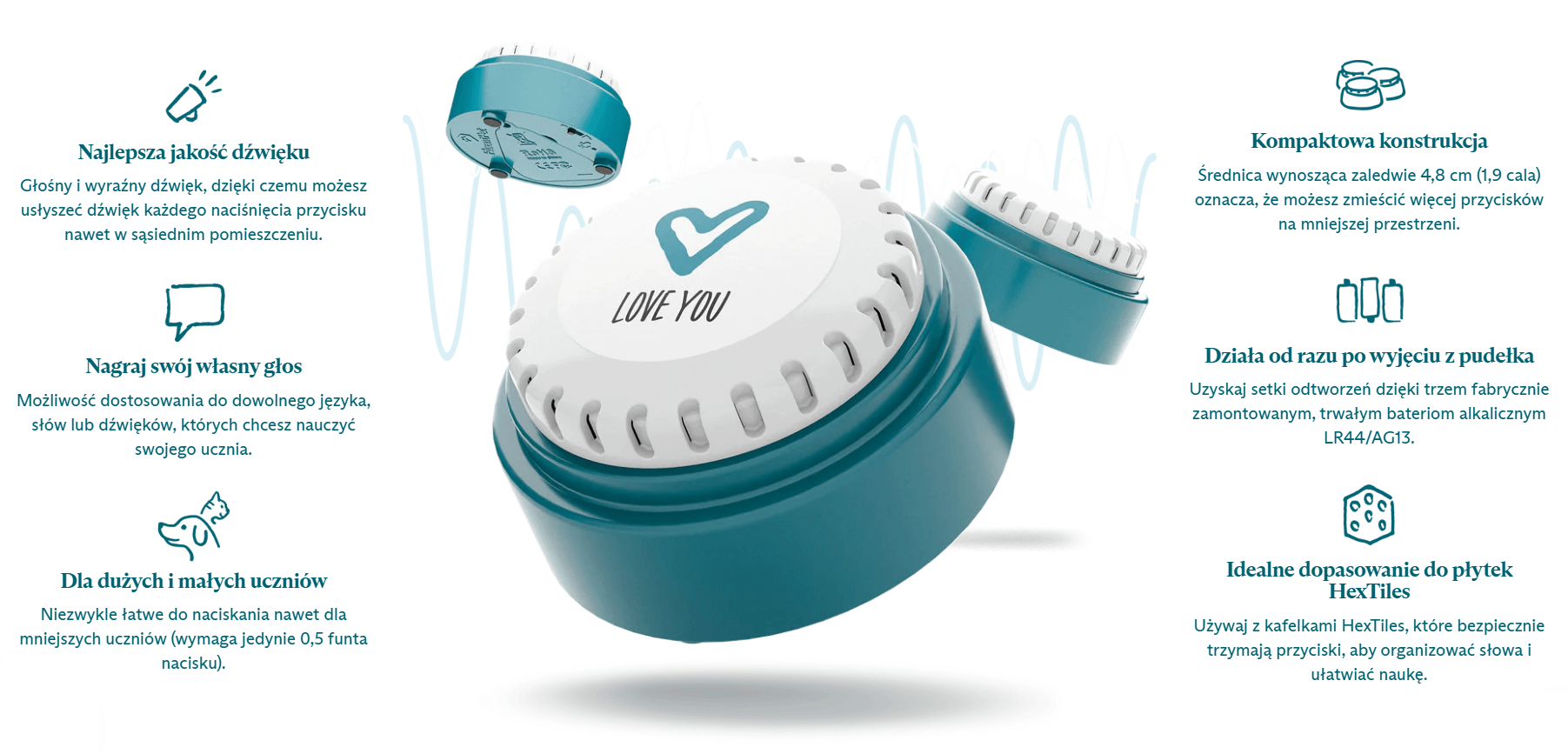 Produkt sprzedawany z fabrycznie zainstalowanymi bateriami. Po zdjęciu osłony baterii i uruchomieniu produktu zwrot może być ograniczony. W przypadku personalizacji przycisków poprzez nagranie indywidualnych komunikatów produkt nie podlega zwrotowi zgodnie z art. 38 pkt 3 Ustawy o prawach konsumenta.